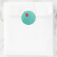 A flying red cherry hurtles through an abstract blue-green field. Use these stickers as envelope seals for the matching Flying Cherry Note Cards!
