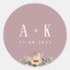 Stickers, Elegant floral pink monogram Classic Round Sticker