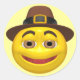 Thanksgiving T-shirts And Gifts sticker; Add a big smile to your Thanksgiving holiday with this adorable happy face Pilgrim on our t-shirts and gifts.