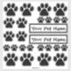 Paw prints in small, medium and large adorn this fabulous sheet of shape-cut stickers.  Whether scrapbooking or decorating gifts or other items, this marvellous sheet of stickers offers size and a "journalling" option with the name of your favourite canine framed.  These stickers are a wonderful option for your favourite pet owner or veterinarian.