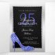 Beautiful silver and black coloured Photo 25th surprise birthday invitation with QR Code for quick and easy reply/information. A pretty all in one invite to celebrate twenty five years.. A glamorous silver diamond frame on a black and silver background encase your event details. With added images of stylish glitzy treble clefs and a rhinestone jewel diamond stiletto high heel shoe. All text is fully customizable to meet your requirements. If you would like help with anything please contact me through my store and i will be very happy to help you. Your QR code will be automatically generated to update the sample code in the design, when you simply change the sample URL in the template with your own event website URL. Please order each invitation separately if you wish to utilise this option of personalising each invitation with your recipients' name and address to save handwriting them. TIP: complete the rest of the invitation details first, then put your first recipients name and address details here. Once you have added your first invite to your cart, you can click on the image of it in your cart, which will take you back to the product then simply add your next recipients name and address. It won't override the previous ones already in your cart. PLEASE NOTE you can delete this text if you prefer to order in bulk and add your recipient name and address details upon receipt.