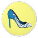 Stiletto pump, blue on yellow ceramic knob
