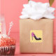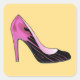 Pop art rendering of the beloved stiletto pump in hot pink and black on a soft orange background