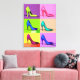 Canvas in Mid-Century style poster art of stiletto pumps / high heels in multiple, bright primary colours