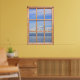 Let a view of the ocean soothe you and give flight to your imagination. This peaceful scene framed by a fake window view poster shows the calm sea with land beyond, and a beautiful blue sky above. This light creates a sheen on the surface of the ocean.