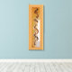 This wrapped canvas offers moody light shining on a segment of simple globe and pitcher shaped terra cotta wind chimes. This photo is framed by a thin line. The image was altered with photo editing software for a rough-painted effect.