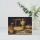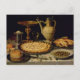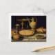 Still life with a tart,chicken, bread and olives postcard
