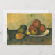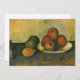 Still Life with Apples (1890) by Paul Cezanne is a vintage post impressionism fine art painting. A variety of fruit with some on a table and others on a serving plate in the kitchen.