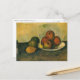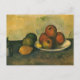Still Life with Apples (1890) by Paul Cezanne is a vintage post impressionism fine art painting. A variety of fruit with some on a table and others on a serving plate in the kitchen.