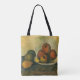 Still Life with Apples (1890) by Paul Cezanne is a vintage post impressionism fine art painting. A variety of fruit with some on a table and others on a serving plate in the kitchen.