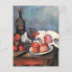This is an oil still life painting by Paul Cézanne titled "Still life with onions".