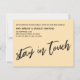 In this piece, the hand-lettered script font was used to create graphics depicting the words "new address. still living out of boxes. don't judge." on the front, and "stay in touch" on the back. The peach background can be changed to any colour you prefer. Please reach out with any special requests or for customising assistance. // 100 //