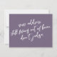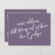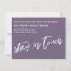 In this piece, the hand-lettered script font was used to create graphics depicting the words "new address. still living out of boxes. don't judge." on the front, and "stay in touch" on the back. The dark, dusty purple (Pantone's "grape compote" background can be changed to any colour you prefer. Please reach out with any special requests or for customising assistance. // 100 //