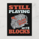 Cool cars and motors theme design showing an engine block and the funny quote "Still playing with blocks". Perfect for car lovers, especially for car mechanics and motorcycle mechanics.