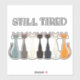 This funny sticker is perfect anyone running on caffeine, sarcasm, and unconditional cat judgment. “Still Tired” features a lineup of sleek, expressive cats with colored eyes, in a minimalist illustration style. These multicolor cats are perfect for people who love cats, quiet jokes, and the reality of being permanently exhausted. Simple. Relatable. Slightly unimpressed. Just like the cats. Meow. This will look great on laptops, notebooks, water bottles, phones and more. Multiple sizes available. Please note, if selecting a transparent sticker, it looks best when applied on a lighter colored base item.