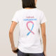 Stillbirth awareness uses a pink and blue ribbon for its cause awareness. The shirt art features a blue and pink awareness ribbon art painting. The awareness t-shirt message notes "Stillbirth Awareness". There is a large image on the back of the shirt and a smaller picture on the front of the shirt. The NIH explains pregnancy loss as "when a pregnancy ends unexpectedly before the 20th week. It is sometimes called early pregnancy loss, mid-trimester pregnancy loss, miscarriage, spontaneous abortion, or foetal demise." The NIH states "stillbirth refers to the death of a foetus at or after the 20th week of pregnancy."