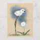 A snowy plover with especially long legs and a puffy dandelion, by Patrick Reinhart.