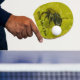 Liven up your ping pong game with this cute paddle featuring a black bee covered in yellow pollen on a lovely yellow flower background. This Sting like a bee makes a silly paddle that may just up your ping pong game. With black text "Sting like a bee".