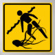 International style road and highway sign warning of dangerous marine life, ie box jellyfish. This sign can be seen in Cape Tribulation, Queensland, Australia.