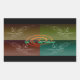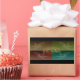 Stingray negative positive multimedia shape design with tiki spear surfer and stingray implied centre with glowing orange swirl. Stingray is a graphite drawing on digital background with earth toned four squares.