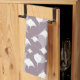 Lavender grey and white marine wildlife print kitchen towel. Manta Rays and Stingrays pattern, white on relaxing lavender grey colour.