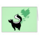 A cute and funny image of a skunk with a heart shaped green cloud.