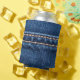 Stitched denim: closeup jeans texture. can cooler