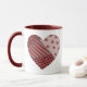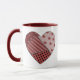 Housewares home decor for the country kitchen of the domestic goddess with a big heart. Simple, feminine, patchwork heart graphic design. Big heart on each side has vintage primitive or folksy look. Patterns of hearts, stripes, polka dots in pinks, reds, black. With a little help from my friends at www.scrappindoodles.com. From She Wolf Medicine.