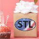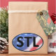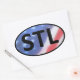 STL Lambert - St. Louis International Airport oval sticker with USA flag background.