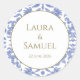 This stone blue and white patterned design with gold writing is elegant, traditional and timeless. Perfect for dusty blue themed branding and events.