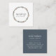 Chic square business cards for massage therapists, aestheticians or wellness businesses feature a circle of watercolor stones in muted nature-inspired hues, encircling two lines of custom text. Add your full contact details to the reverse side in white on smoky blue grey.