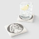 Stone coaster with Q-Tea-Pie logo. The cork backing will keep surfaces scratch-free from your chosen stone backdrop of Sandstone, Marble, Limestone, or Travertine.