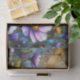 of pink, purple and blue flowers along a pretty flowing stream, as the sun sets