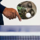 Stone garden statue with flower ping pong paddle