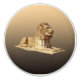 A tan and brown rendering of a carved stone lion on a background of the same colours.