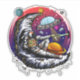 Original vector art of a astronaut having moon cheese and passing a slice to a alien. Created in vector.