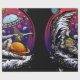 Original vector art of a astronaut having moon cheese and passing a slice to a alien. Created in vector.
