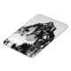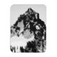 A black and white photograph of a mountain peak that is part of the Tatoosh Range in Washington State. The photograph was created in Mount Rainier National Park during a summer. The mountain is draped in snow. There are trees and stone protruding from it, which created shadows. Image Copyright ©2023 Kimberly J Tilley. zazzle.com/store/developingnature