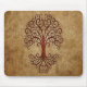This symmetrical tree design features intricate tribal swirl patterns. The rough textures and brown colors give the pattern the look of an ancient carving. Cracks run throughout the background giving this mouse pad a fractured look. The leaves, branches and roots are represented with beautiful flowing lines creating a bold and stylish symbol of nature.