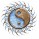 Yin and Yang symbolise the forces of cosmic energy and cosmic balance. Yin is all that is "feminine" receptive and magnetic, dark. Yang is the "masculine" active and kinetic force, light. However as they flow together, each of these forces are shown to hold a small dot of the other within them.