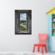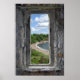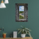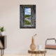 Castle Window looking onto Sand Beach This scene of a sandy beach fringed with trees is one of a pair -- hang both of these pictures that look like windows on the same wall to create a wonderful view outside. The scene features the sea breaking gently on the sand, where you can see footprints along the beach. Sea grass and gorse lie beneath the stone window which was photographed in a genuine Scottish castle. In the distance you can see the stone stairs that are said to have inspired 'The 39 Steps'.