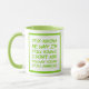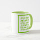 This funny coffee mug is in a bright green font and says "Stop asking me why I'm still single. I don't ask you why you're still married."