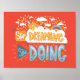 Cute colourful "Stop Dreaming Start Doing" quote with rainbows, stars and unicorn head.