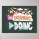 Cute colourful "Stop Dreaming Start Doing" quote with rainbows, stars and unicorn head.