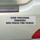 Stop Pressing Triggers, Press for Peace Bumper Sticker