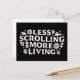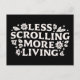 Less scrolling more living stop doomscrolling offline motivational mental health support quotes floral aesthetic. Social media addiction screen time break digital detox reminder gift small print black postcard.