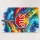 This puzzle has an artsy stop sign on it.
