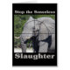 A close up of an African elephant in the cross hairs with the words Stop the Senseless Slaughter surrounding it.
