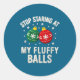Stop Staring At My Fluffy Funny Christmas Ornament Classic Round Sticker