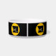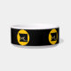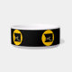 This is a heavy, durable bowl decorated with Tibbies of many colors, the perfect size for hungry/thirsty Tibs. The design is interesting and printing clear.